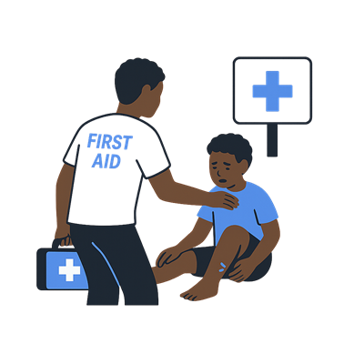 Emergency first aid provided for accidents and incidents happening inside or near the camps.