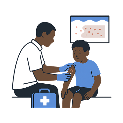 Treatment and prevention of jiggers, rashes, and open wounds common in overcrowded camps.